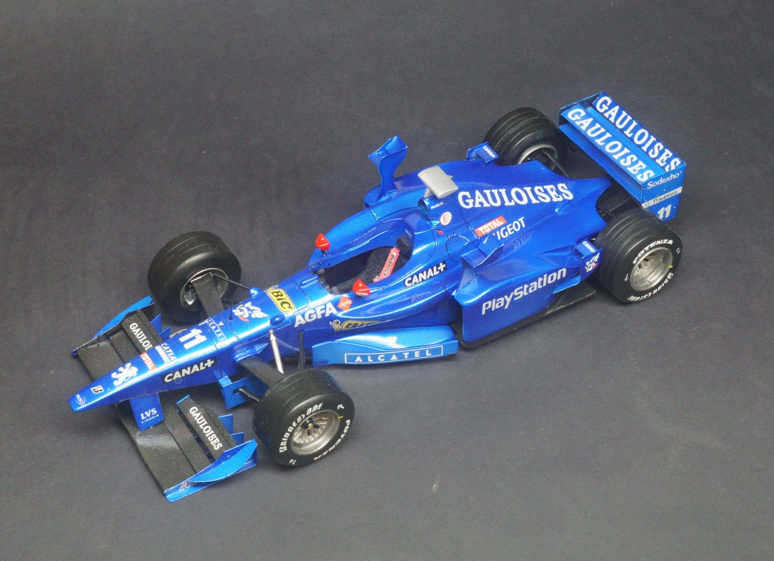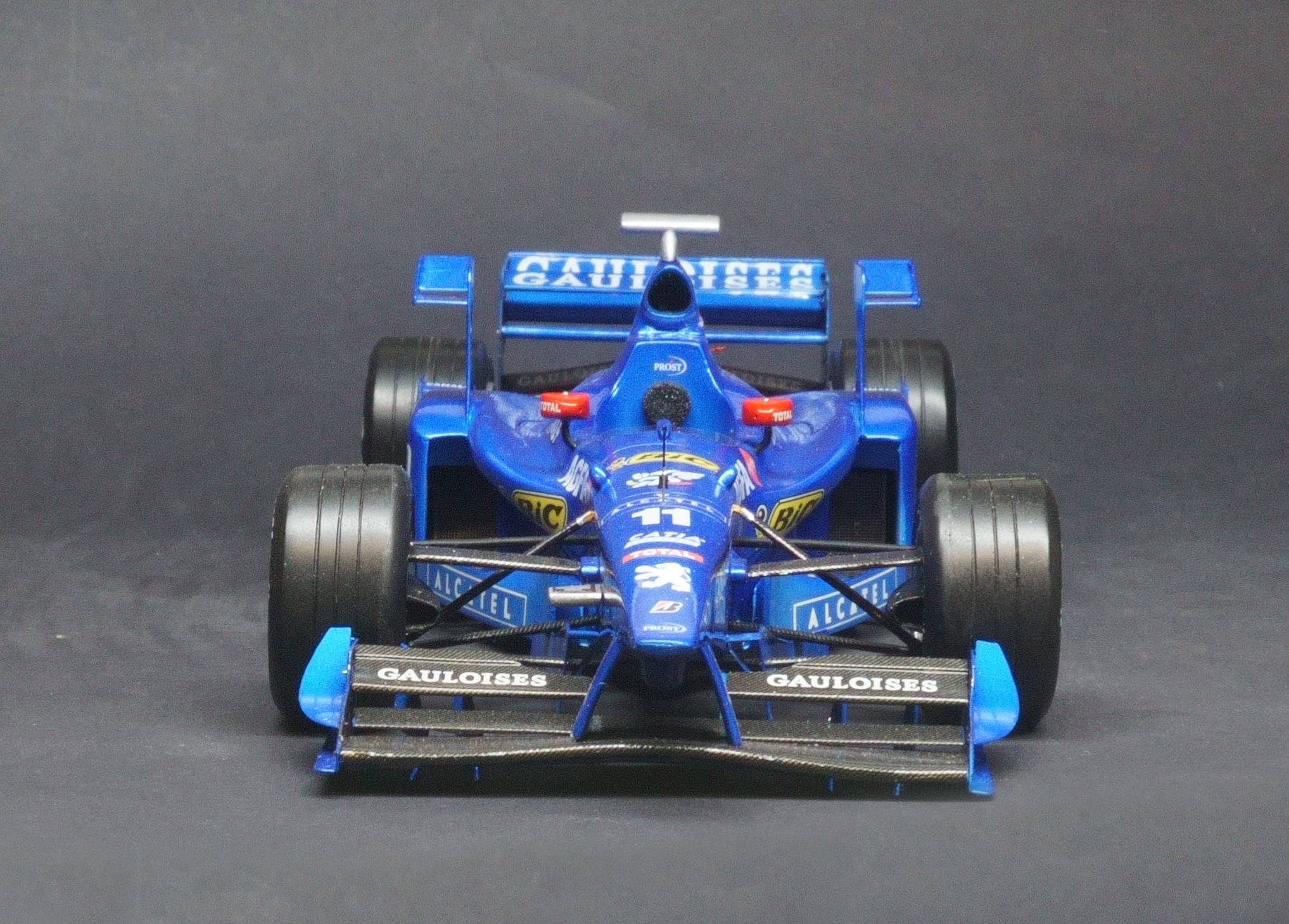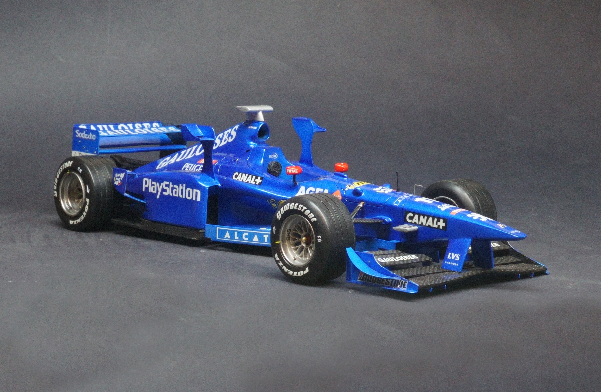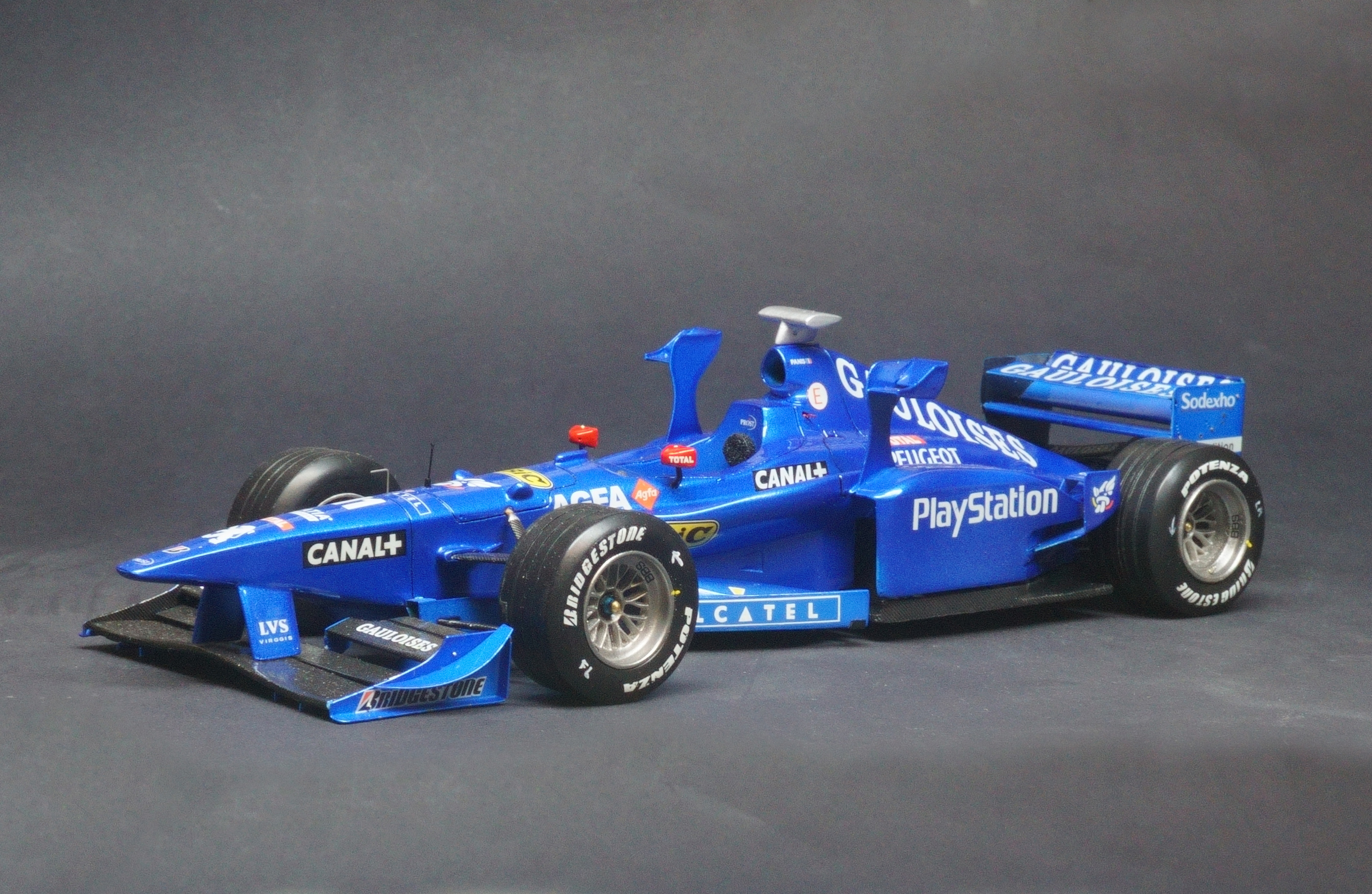 The Prost AP01 was Alain Prost's first F1 car as a team owner after taking over the fading Ligier team at the end of the 1997 season. Driven by fellow Frenchman Olivier Panis and Italian Jarno Trulli. Powered by the Peugeot V10 engine the all French team entered the 1998 season with high hopes, however the 1998 turned into a disaster for Prost. The main problem with the car was its heavy engine which proved very unreliable and affected the car's balance recording numerous DNFs that season. What made matter's worse was the team made the decision to relocate it's operations to a factory nearer Paris and so the season turned into purely damage limitation gaining a solitary world championship point all season resulting in a 9th place in the Constructors' Championship.