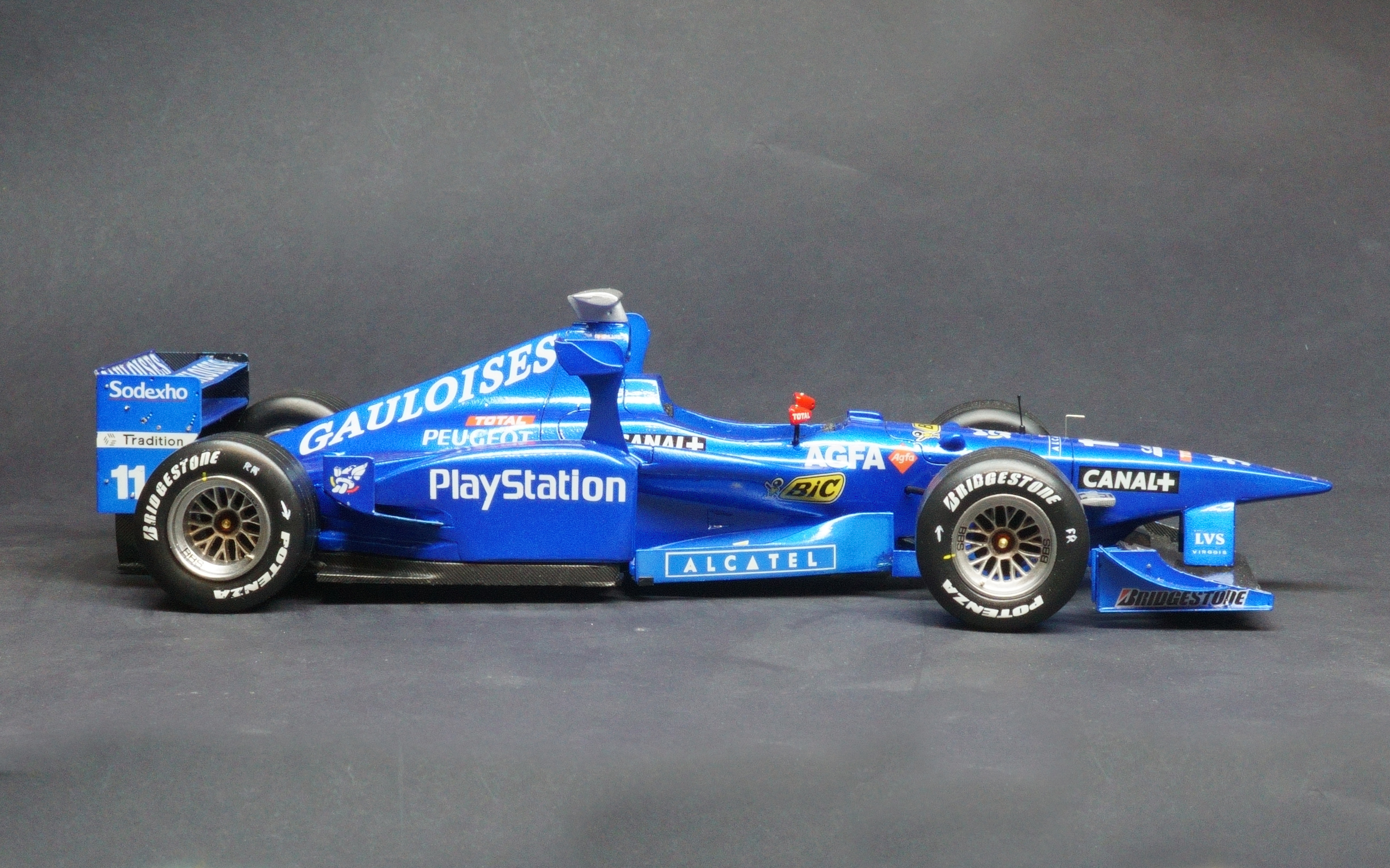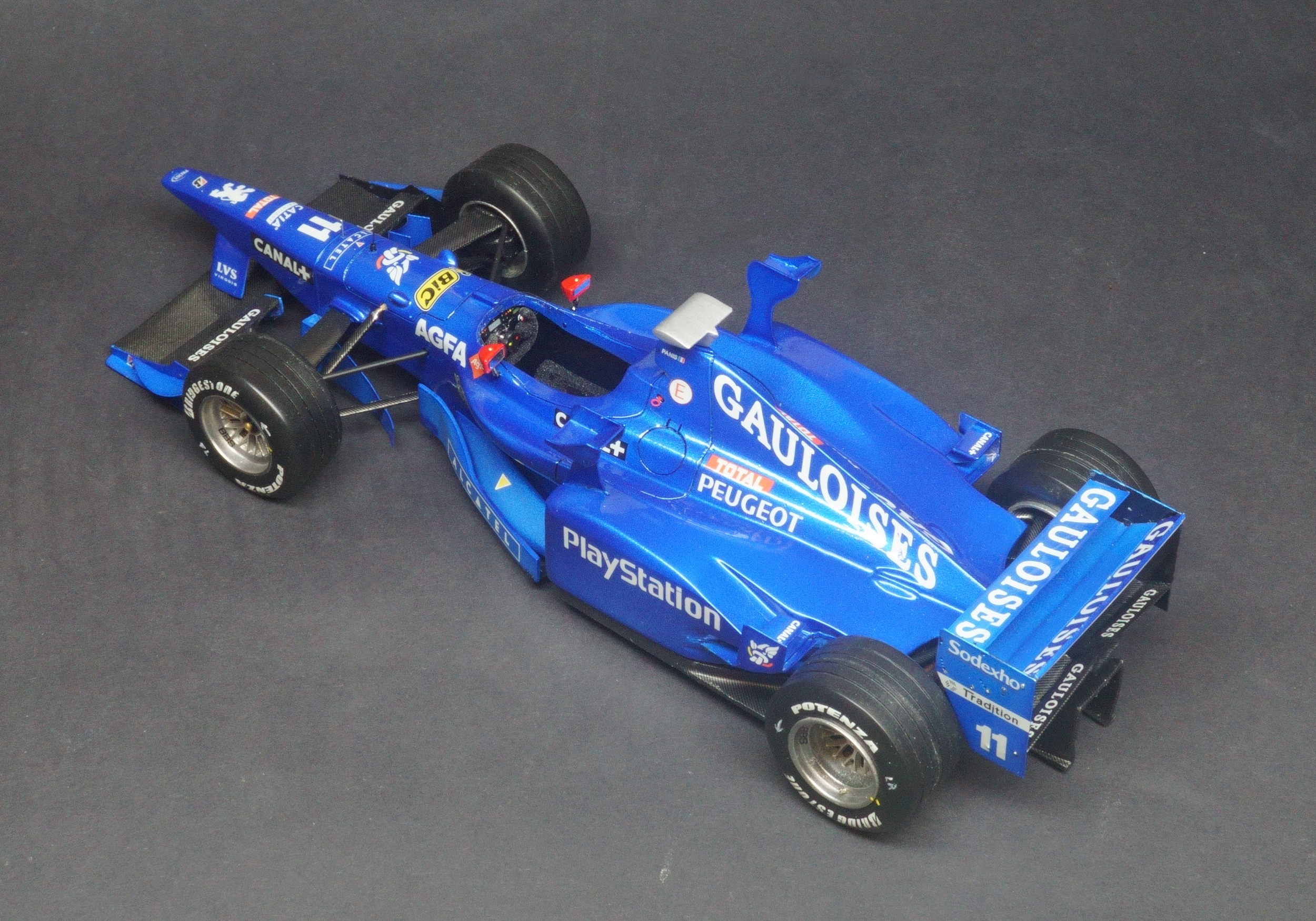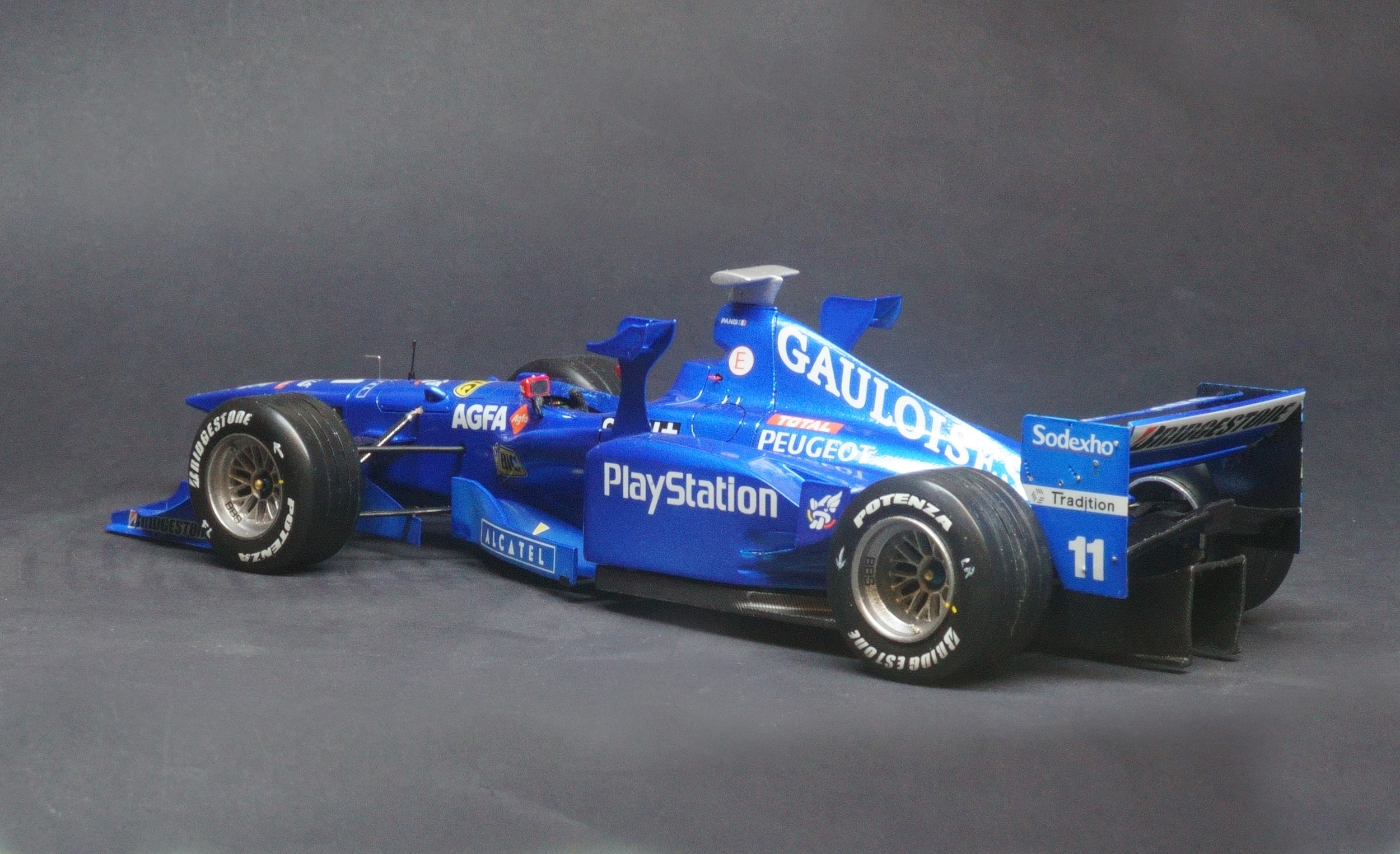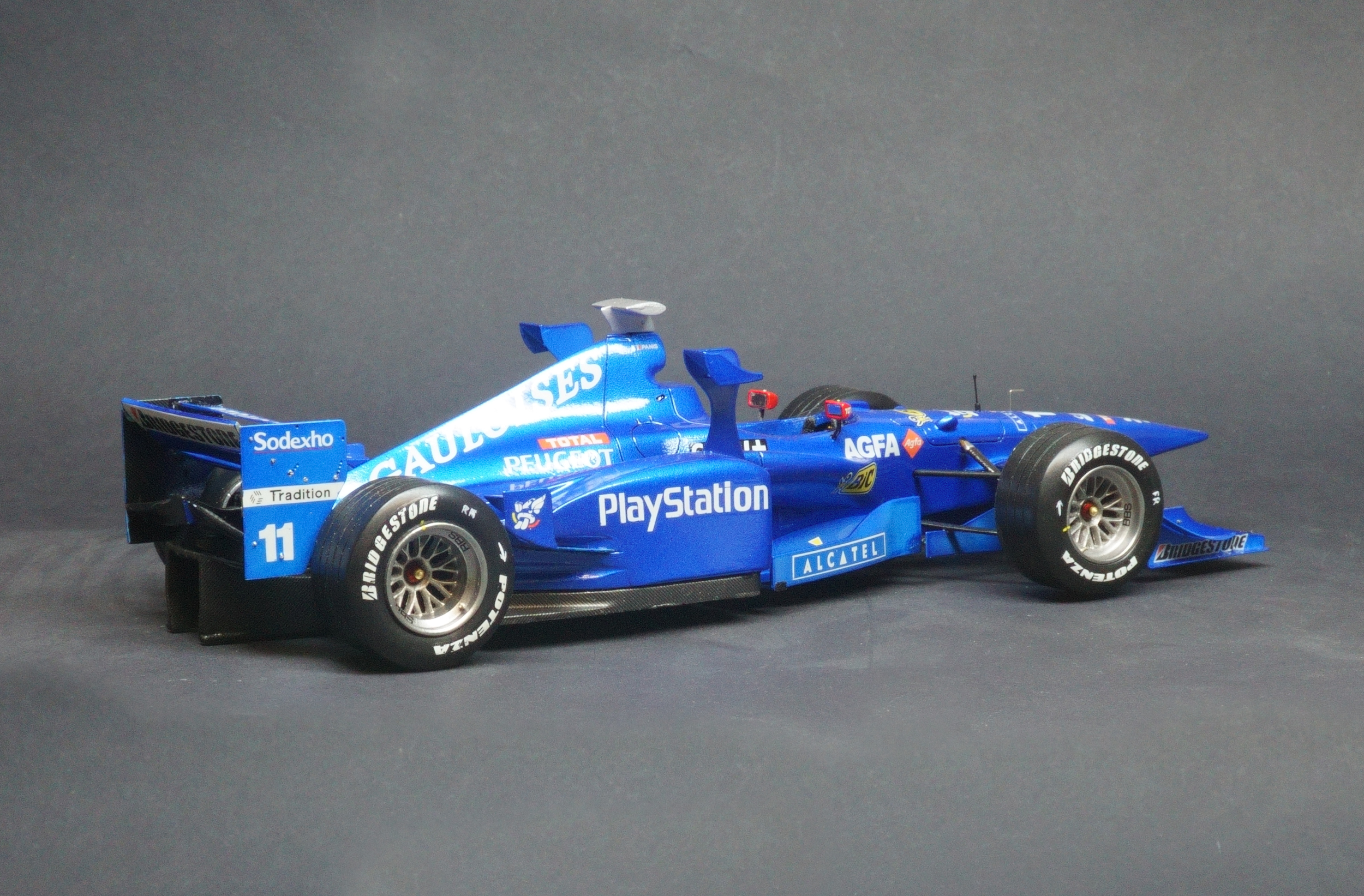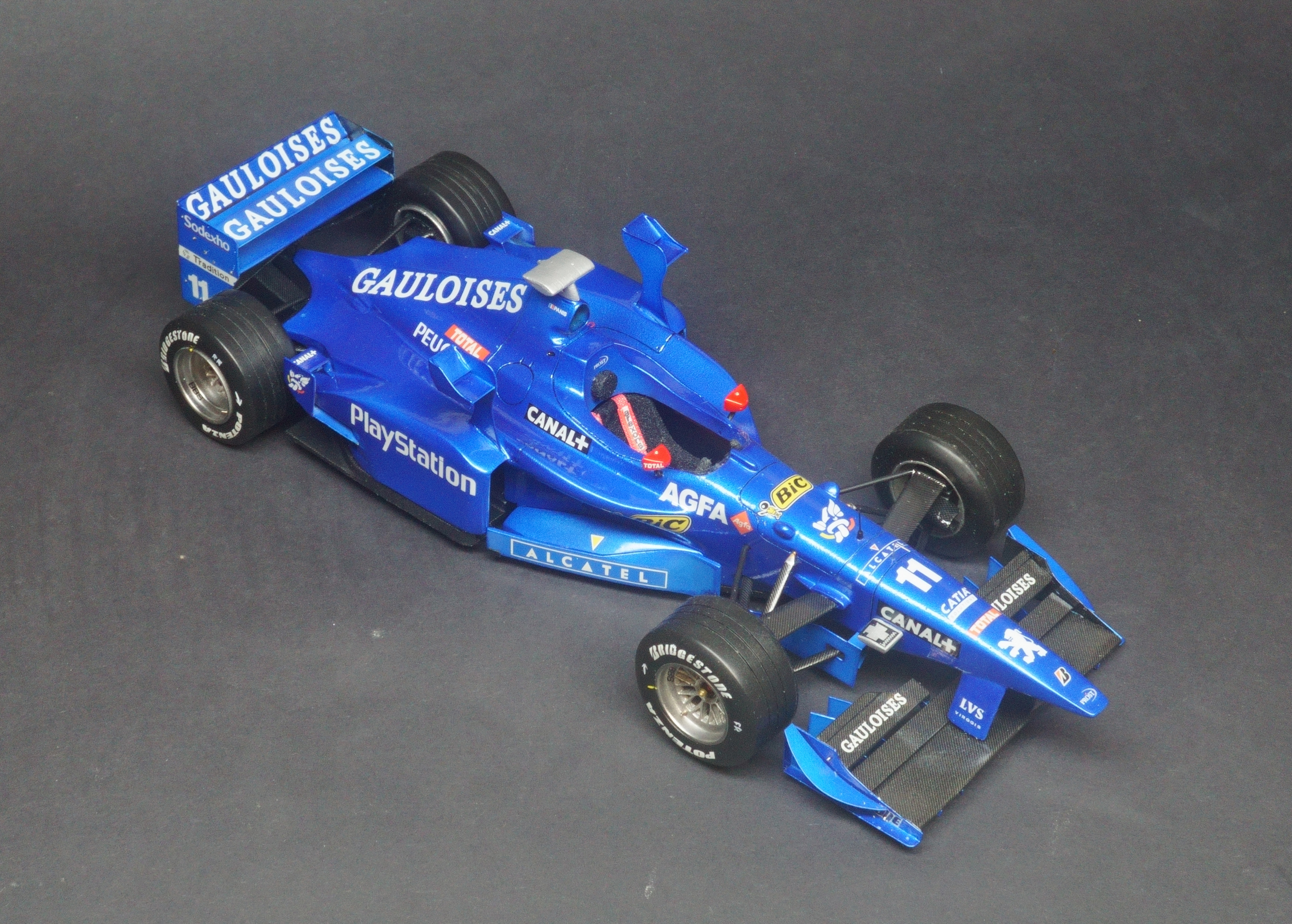 The Prost AP01 was Alain Prost's first F1 car as a team owner after taking over the fading Ligier team at the end of the 1997 season. Driven by fellow Frenchman Olivier Panis and Italian Jarno Trulli. Powered by the Peugeot V10 engine the all French team entered the 1998 season with high hopes, however the 1998 turned into a disaster for Prost. The main problem with the car was its heavy engine which proved very unreliable and affected the car's balance recording numerous DNFs that season. What made matter's worse was the team made the decision to relocate it's operations to a factory nearer Paris and so the season turned into purely damage limitation gaining a solitary world championship point all season resulting in a 9th place in the Constructors' Championship.