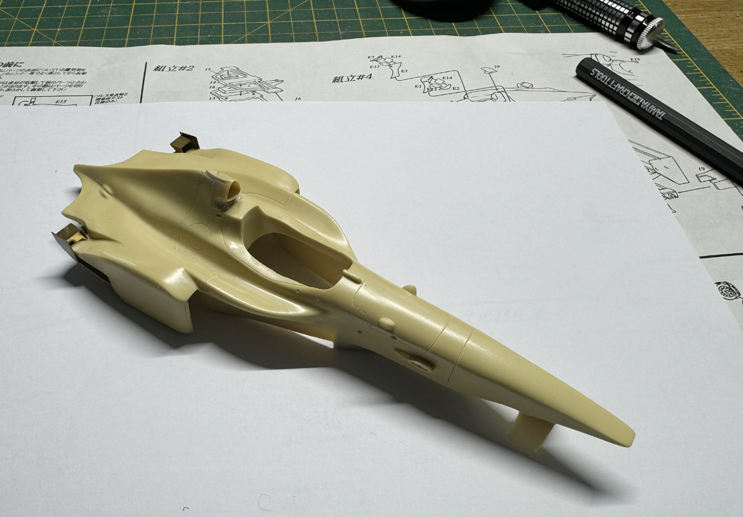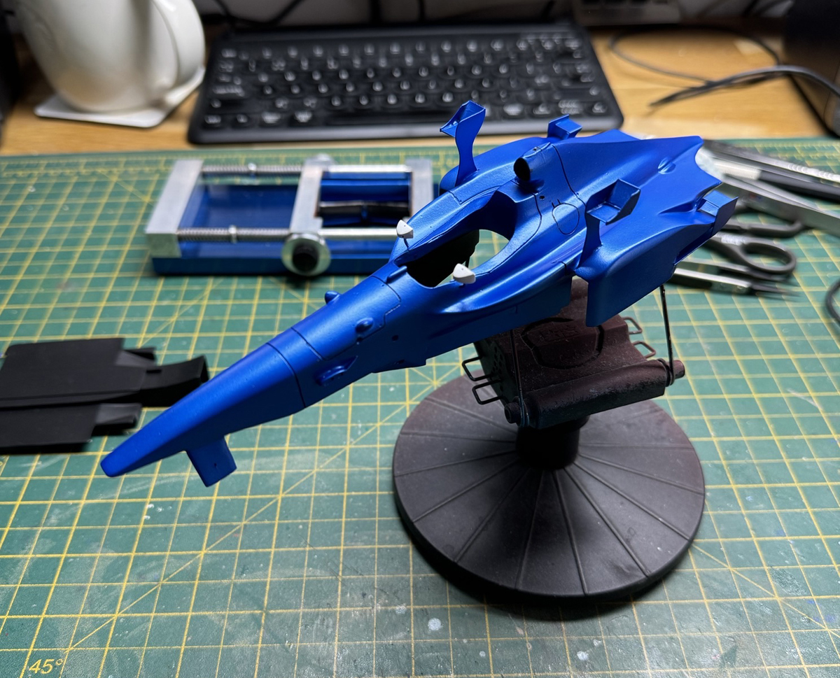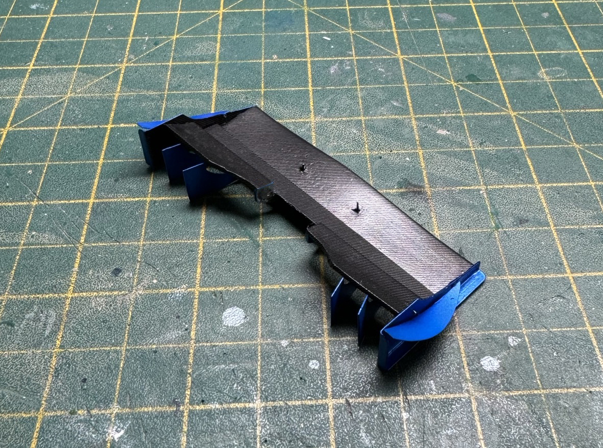 The build is a curbside resin model by the small manufacturer Hobby Base Custom depicting the Olivier Panis car. Assembly of these kits is relatively straightforward however pre-assembly and test fitting as many parts of possible is vital as there is always some testing areas of fit which need to be fixed before applying paint. The model was sprayed using Zero paints beautiful Prost Blue and clear coated with 2 part clear. Some C/F decal was added to the floor and a wooden 'plank' decal was used for the floor. I added some small extra details to the interior and decided to include the controversial 'X-Wing Winglets' which were used on a number of cars early in the 1998 season before being banned.