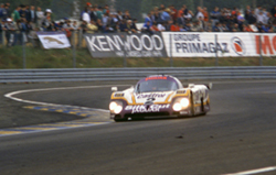 The XJR-9 was manufactured by Tom Walkinshaw Racing (TWR) and featured a 7.0-liter V12 capable of producing 750 bhp, it was this power unit which drove the XJR9-LM. Five cars equipped with this unit were prepared for Le Mans to take on the might of the factory-backed Porsche 962C. The Jaguars led from the start of the race, but two retirements meant only the Jan Lammers, Johnny Dumfries and Andy Wallace car remained to take overall honors. Late in the race the car developed a transmission problem meaning it could only be driven in fourth gear, even so it still managed to finish two laps ahead of their main rivals - the Porsche 962C.