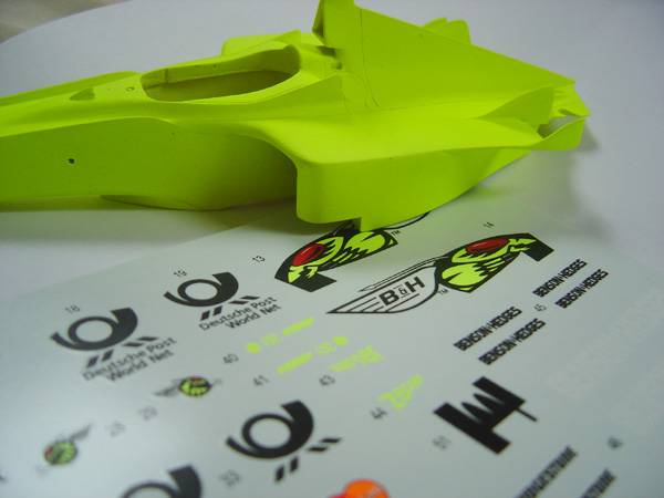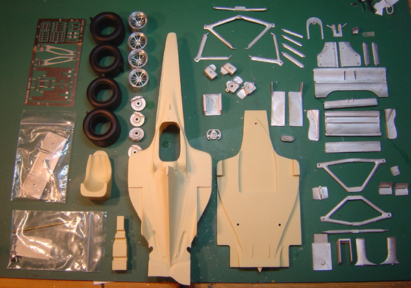 The model is a resin curbside kit by the manfacturer Treasure Hunt and is my first kit by this company. I had not heard too many good reviews although the US award winning modeler Bil Attridge has built a beautiful version using the same kit. I have to say I was disappointed with the quality of the kit in most areas. It requires a lot of work to just get it looking reasonable and I spent a great deal of time test fitting and re-adjusting the suspension in order for the car to sit flat and staight. The quality of the fit is poor and the detail level is minimal to say the least. On the plus side (for which there are few) the decals were very nice and the wheels were beautifully cast, it was a shame having to spray them black. All in all not a good experience and I only hope that the next resin kit I build will be better.