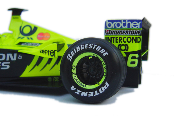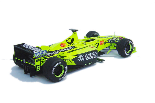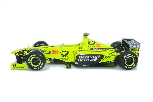 The Jordan EJ10 is an updated version of the EJ10B and was the car with which Jordan entered into the 2000 F1 Season. The old format Chassis numbers which Eddie Jordan has previously used ie. Jordan 199 for 1999 etc, were changed on the EJ10 to celebrate the team's tenth season in Forumla One with Eddie Jordan as Owner. The team were also beginning to get more and more competitive with each season and there was a genuine hope that they would once again enjoy a competitive season in 2000. Unfortunately the season did not bring success for Jordan, reliability and lack of performance hindered their results throughout the season.