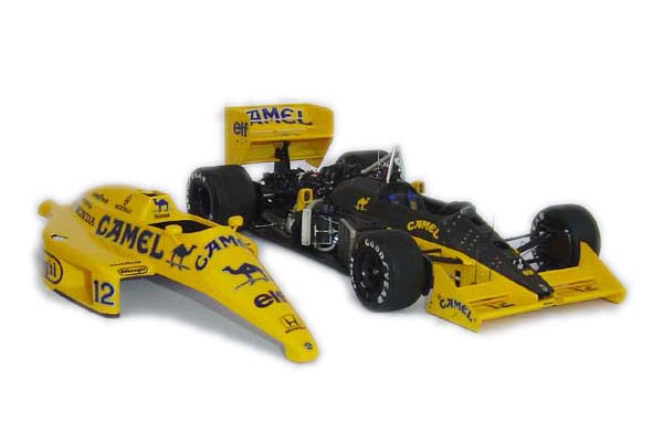 The car featured active computerised suspension which compensated for track conditions, speed, steering and even weight changes caused by the ever-decreasing fuel load carried by the car during a race. The 99T was the first Lotus car to feature a new main sponsor - Camel. Their long standing partnership with John Player Special coming to an end the previous season. The Camel scheme could not have been more different, gone was the black and gold colours replaced with a simple bright yellow body colour with blue sponsor logos.