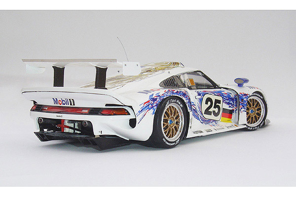 In 1995 Porsche debuted the 911 GT1, subsequently announcing that it would be competing in the 1996 Le Mans 24hr. In spite of its name, the car actually has very little in common with a traditional 911, in fact it's floorpan is derived from the 956/962 Group C car. The GT1 is powered by a water cooled twin-turbocharged and inter-cooled four valve per cylinder flat-six, mid mounted engine making about 600hp (450kW). The new vehicle was an instant success at Le Mans, winning the GT1 class at its debut race, although it lost the overall victory to Joest Racing's Porsche WSC-95 prototype.