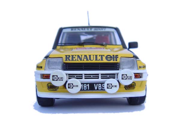 This car was given its debut in the 1981 Monte Carlo Rally and was driven by Frenchman Jean Ragnotti in the original Renault yellow, black & white colour scheme, the car won the event and Ragnotti achieved his first of only 3 WRC victories. The Renault appeared at a time considered to be the 'Golden Era' of rallying, competing against the likes of young Fin Henri Toivenen in a Talbot Sunbeam, Hannu Mikkola & Michelle Mouton in the all new 4WD Audi Quattros, Ari Vatanen in the Privateer Rothmans Ford Escort MkII and other manufacturers including Opel Ascona, Fiat Arbarth, Datsun 160J & a big budget entry from Mercedes with the 450SL which proved to be a big disappointment.