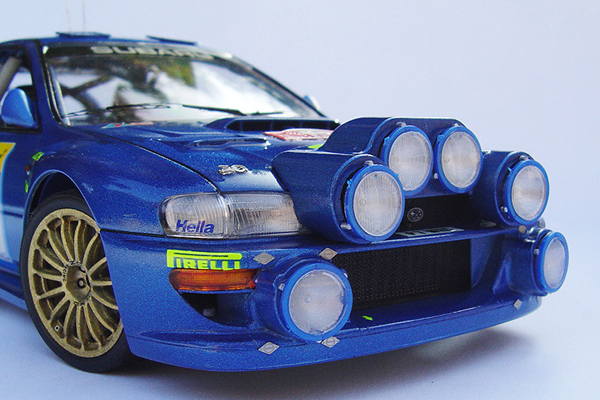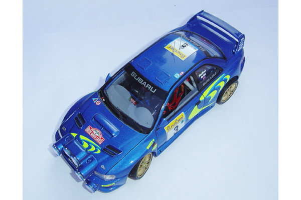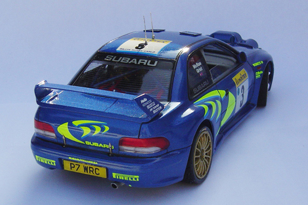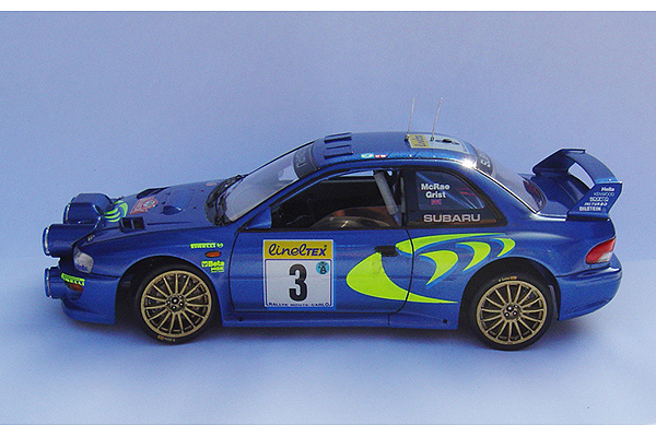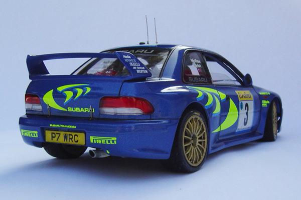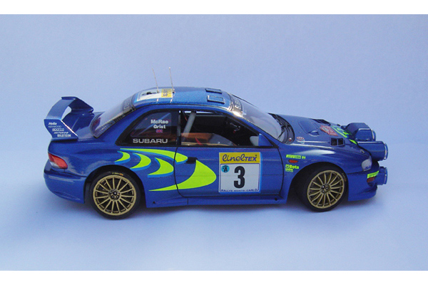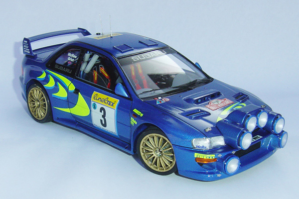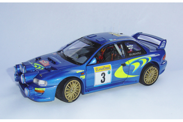The Subaru Imprezza began it's international rallying career in 1993 taking over from the Subaru Legacy and has made Subaru into one of the top teams competing in the WRC ever since. The '98 Imprezza has extended wheel arches, a re-designed front spoiler to allow greater cooling into the front radiator and was the first Subaru to feature the oversize rear wing to increase downforce on the rear wheels. It was powered by a 4 cylinder Turbo charged engine which delivered over 300 bhp. The car I have built is that driven by the late Colin McRae and co-driver Nicky Grist at the '98 Monte Carlo Rally.
