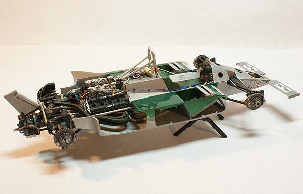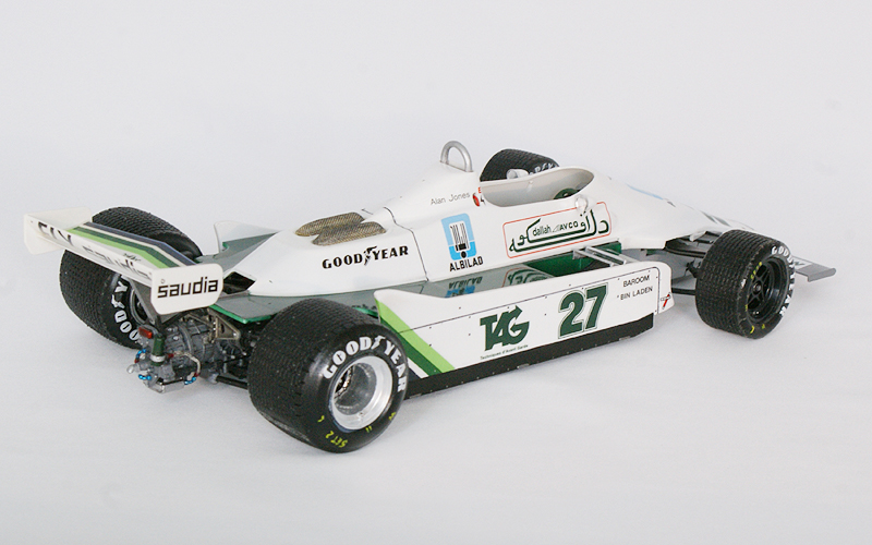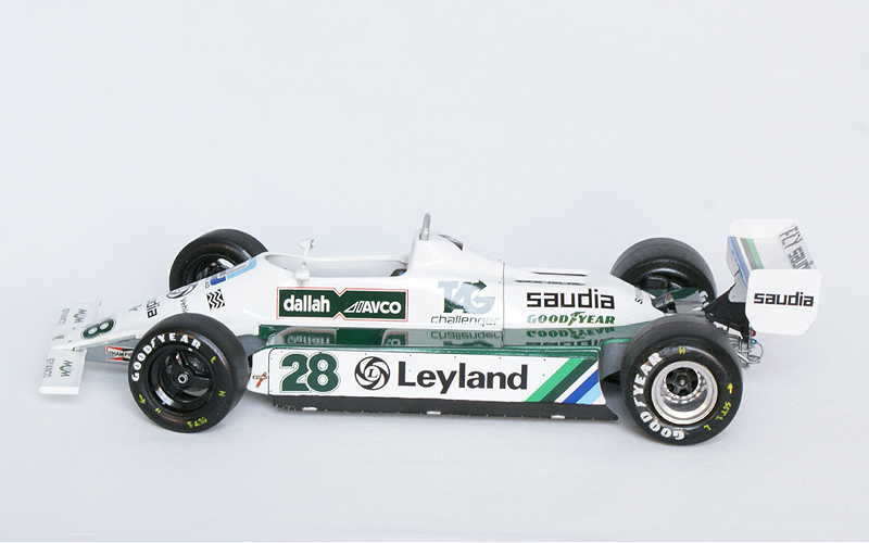 In the following 1980 season the FW07 became the FW07B. Regazzoni was replaced by the enigmatic Carlos Reutemann, and while he and Jones formed a successful partnership, there was clearly a tension between the two drivers. Both developed the car further, improving areas such as setup and suspension. Later on into it's development such was the success of it's ground effects, the engineers decided that the car now no longer needed the front wings and these were subsequently removed. The hours of testing and development paid dividends for the Williams team, Jones won five races in Argentina, France, Britain, Canada and the USA and went on to win his only world championship, while Reutemann won at a wet Monaco. The nearest challenge came from Brabham's BT49 in the hands of Nelson Piquet. It also saw Williams go on to win their first of many constructors' championships.