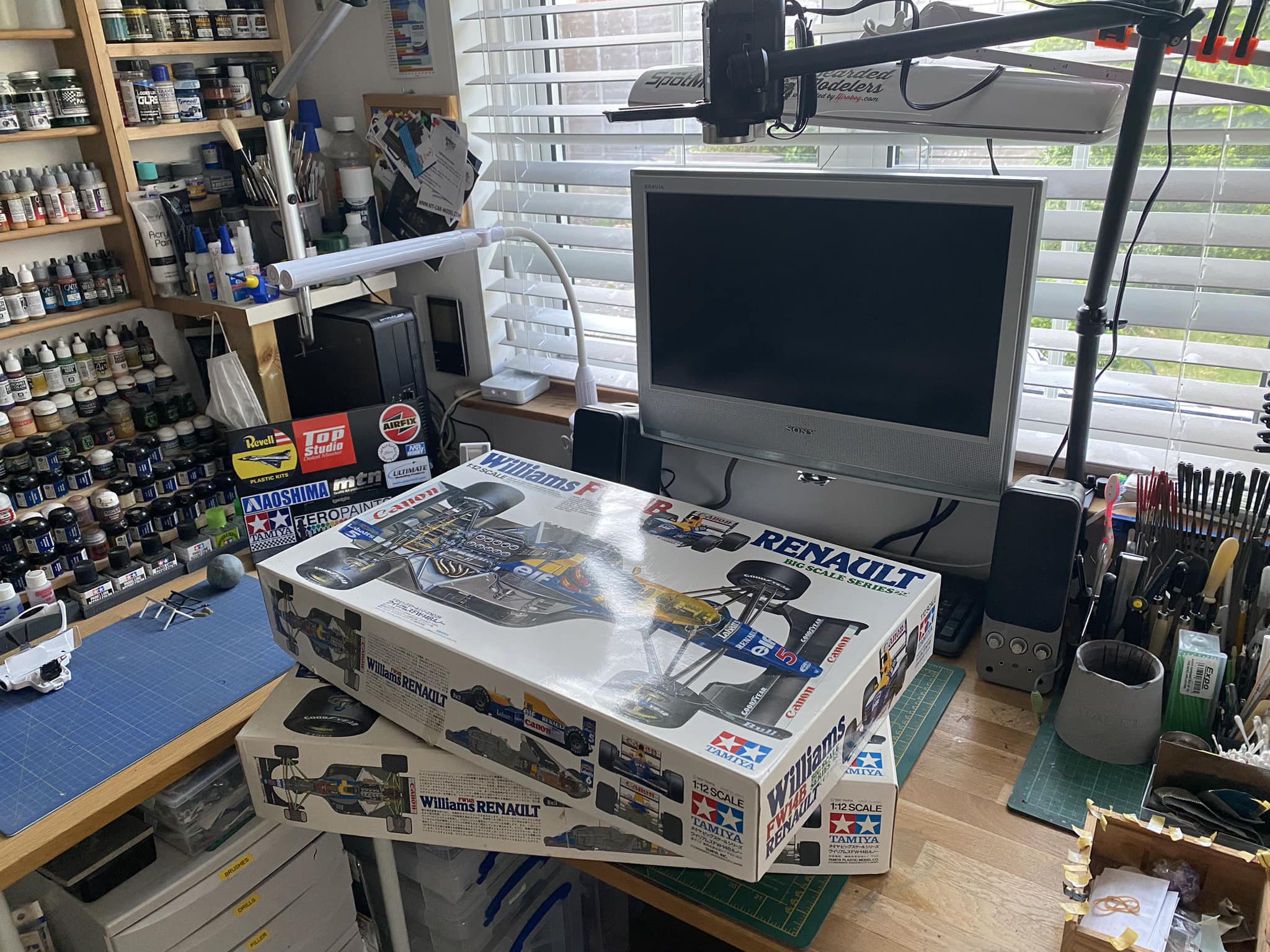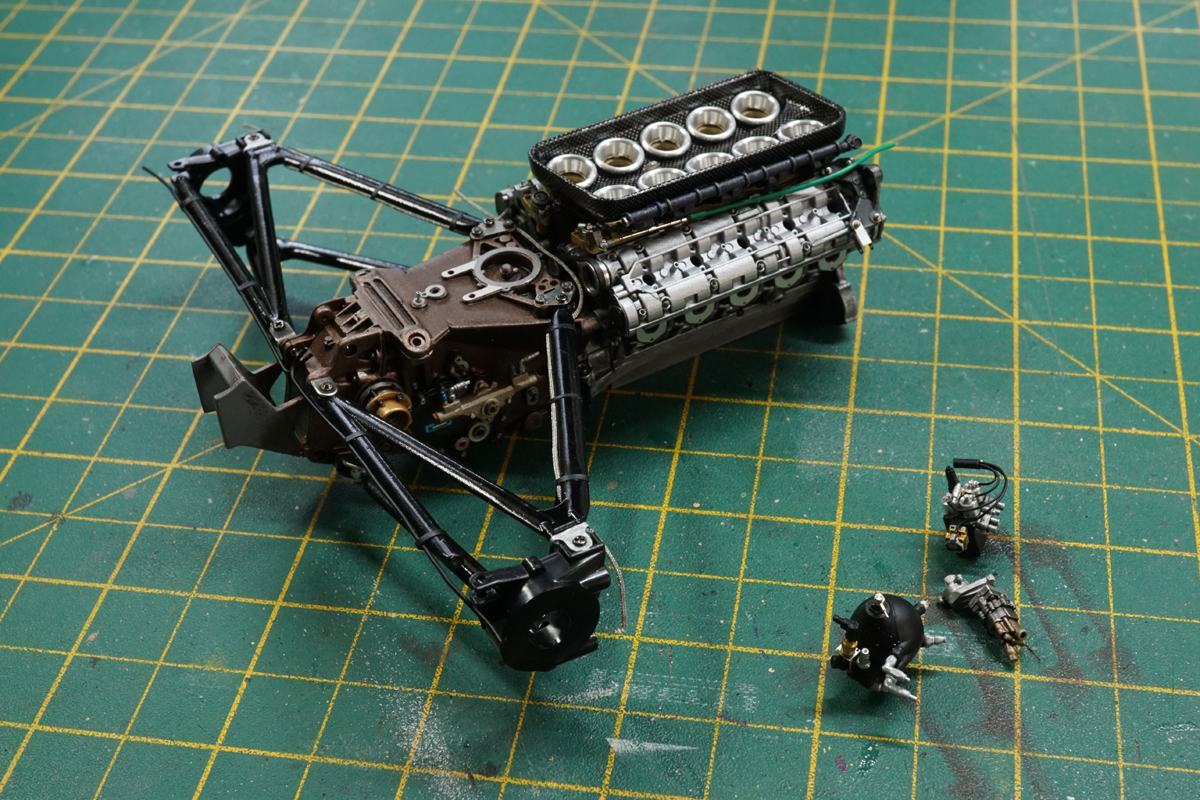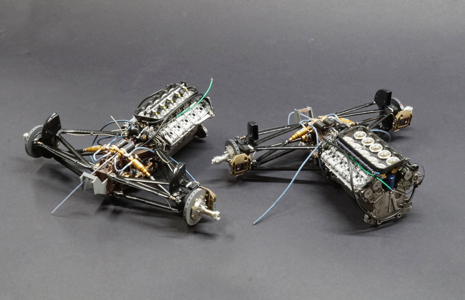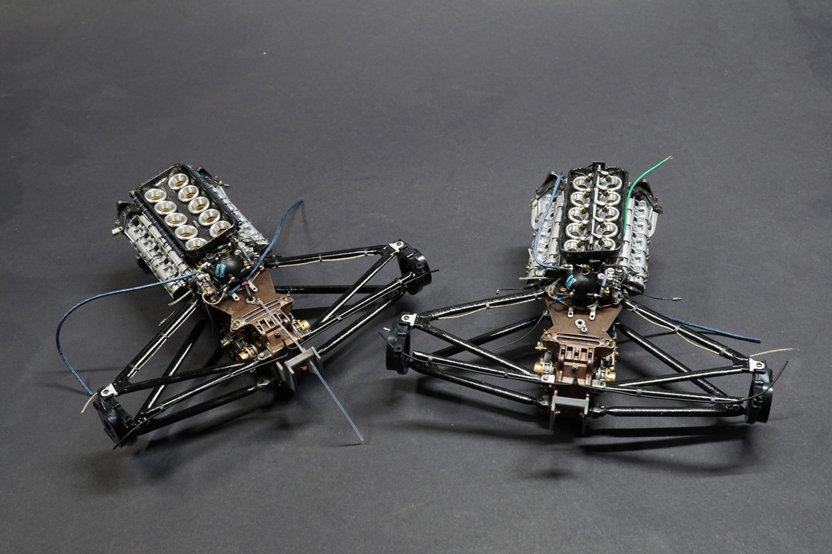 This was double build of two Tamiya 1/12 kits depicting both the Mansell and Patrese cars from 1992, both featured the full set of Top Studio after market detail sets, and further additions such as MFH tyres, Thunder Valley F1 detail sets and tobacco branded decals from Museum collection.