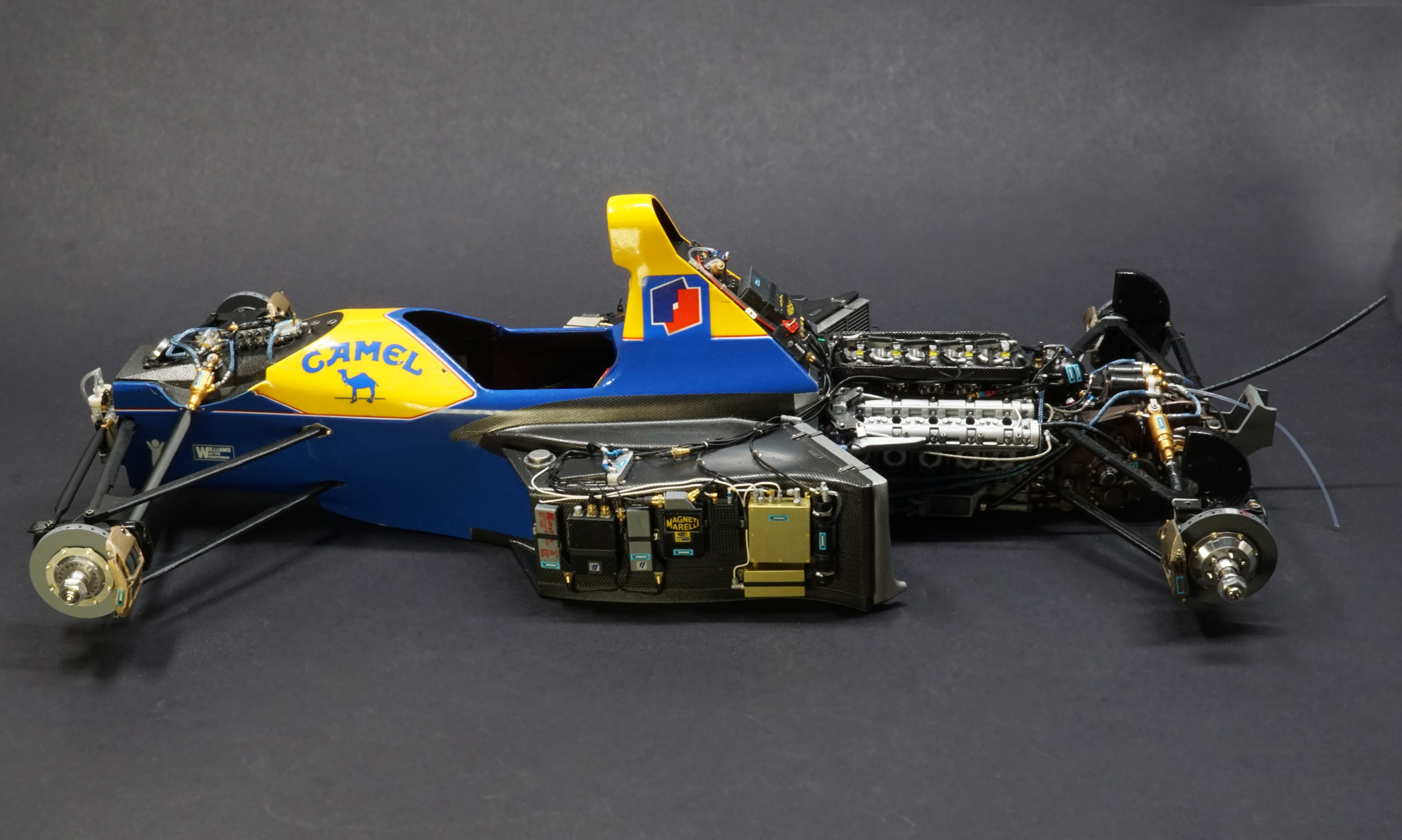 With a 3.5-litre V10 Renault engine designed by Bernard Dudot, to this day the car is still considered to be one of the most technologically sophisticated to have competed in Formula One. It featured semi-automatic transmission, active suspension, traction control and even anti-lock brakes initially. With Newey's aerodynamics and Frank Dernie's active suspension the car was so far ahead of its competitors and dominated much of the season ultimately giving Nigel Mansell his one and only World Champhionship. The further developed and believed to be even quicker FW15 was available to the team during the mid season of 1992, but such was the dominance of the FW14B was never used until 1993.