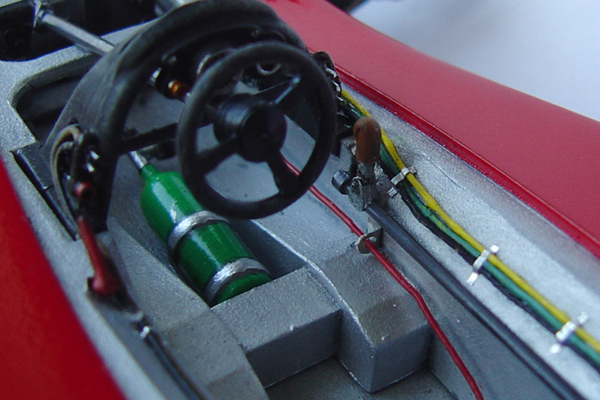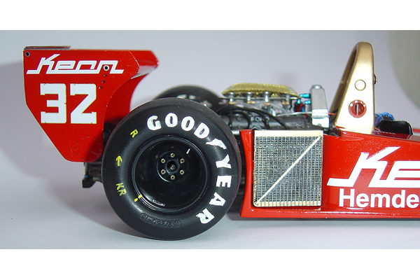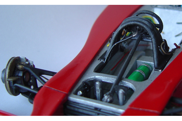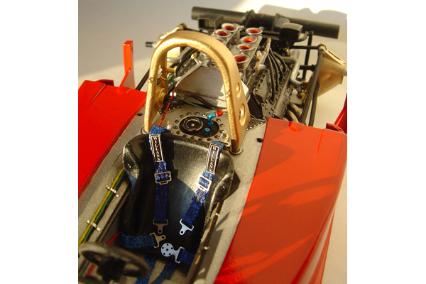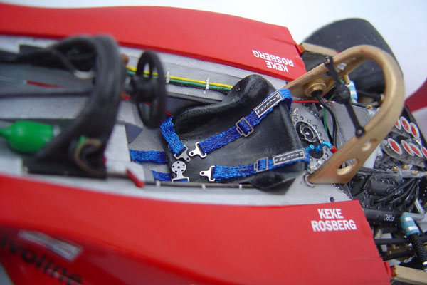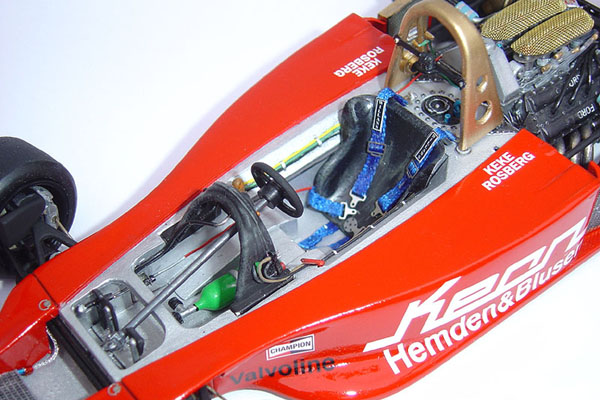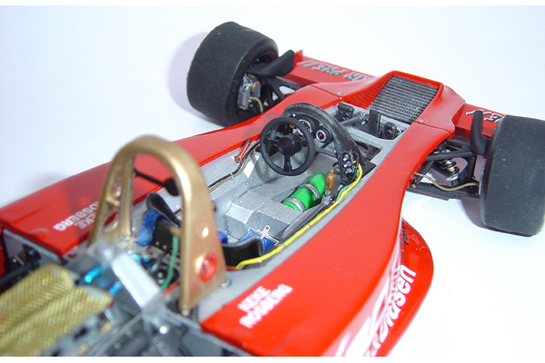 The model is based on the car entered into the 1978 German GP. I have the 1/12 scale Wolf to build in the future soI wanted to make this as different from that car as possible so this variant with its red and white Theodore colour scheme, while simple, looks equally attractive. I added after market p/e details using the Studio27 detail set and I also a large amount of scratch built additions to both the cockpit and engine bay.